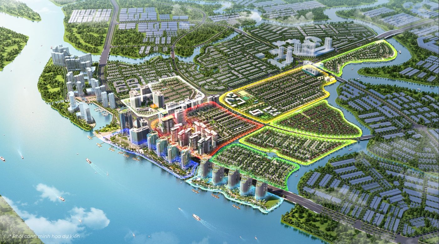 Trục sông nước dài 1,1 km và tiếp giá trực tiếp với sông Đồng Nai. Quảng trường và bến du thuyền cao tầng nằm ven sông.