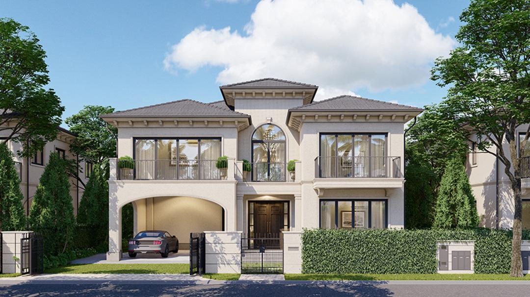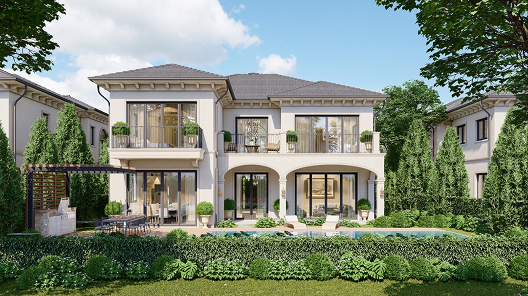 – Villa Riverfront có diện tích từ 608 đến 699 mét vuông và được thiết kế theo kiến trúc Nam Âu. Mỗi căn được xây dựng cao hai tầng với bốn phòng ngủ và diện tích sàn 490 m2 với tông..