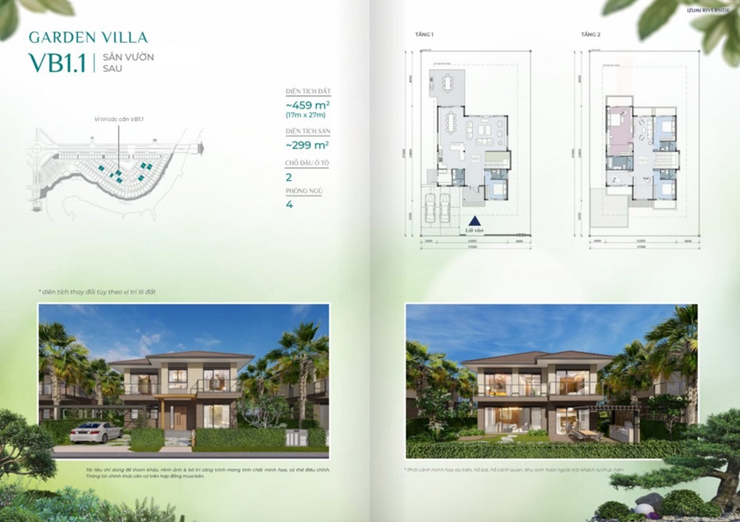 Thiết kế mẫu villa vườn tiêu chuẩn của dự án Izumi Riverside